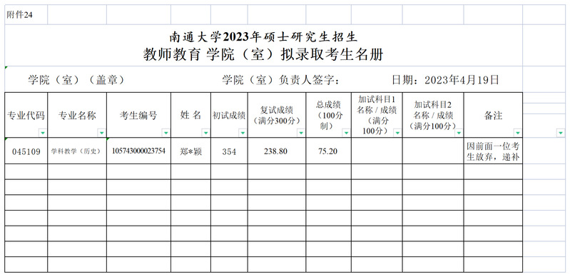 2023年硕士研究生招生调剂3拟录取名单(递补人员)