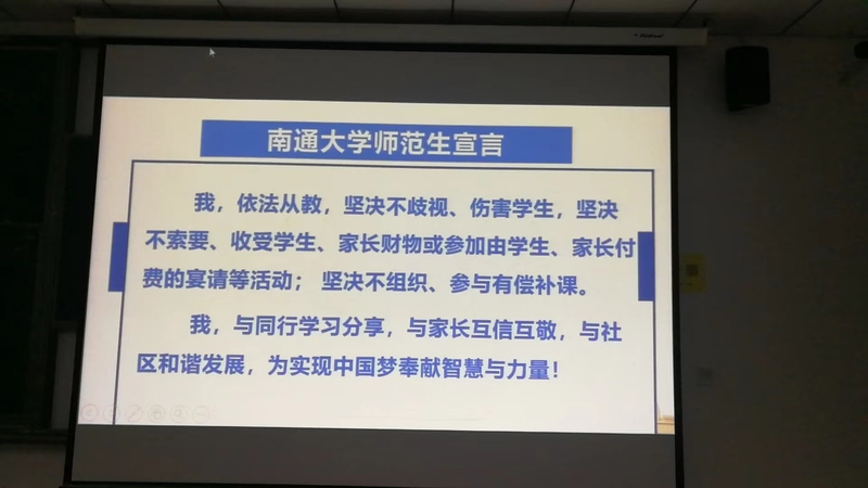 仪式上,在许映建老师的带领下,全体教育硕士立正站好,举起右拳,齐声宣读誓词:“我,PA视讯官方网站师范生,我深知,教师承担着传播知识、传播思想、传播真理的历史使命,肩负着塑造灵魂、塑造生命、塑造人的时代重任,是国家富强、民族振兴、人民幸福的重要基石。我宣誓,作为未来的人民教师,我,以立德树人为本,引领员工爱国、向善,尊重员工个性,陪伴员工共同成长。我,坚守平凡岗位,演绎精彩课堂,提升专业素养,践行教育理想。我,依法从教,坚决不歧视、伤害员工,坚决不索要、收受员工、家长财物或参加由员工、家长付费的宴请等活动;坚决不组织、参与有偿补课。我,与同行学习分享,与家长互信互敬,与社区和谐发展。我,志愿成为一名人民教师,忠诚党的教育事业,遵守教育法律法规,履行教书育人职责,做到有理想信念、有道德情操、有扎实学识、有仁爱之心,为民族振兴和人民幸福努力奋斗!”誓言铿锵有力,承诺掷地有声,回响在教室的每一个角落,表达了同学们投身教育的无限热情,培养人才的坚定决心。