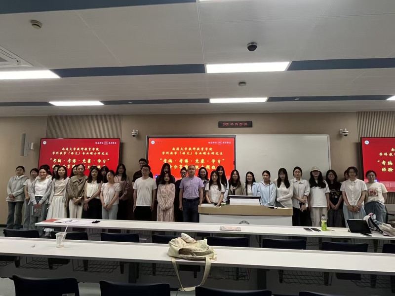 许张颖建议充分利用硕士研究生的身份优势,多关注教学细节和文本解读能力,可以按照文体进行分类准备,强调了试讲过程中和员工保持互动的重要性。丁杰通过自己跨考教育技术学博士的经验,建议研二同学尽快联系导师,强调科研写作的重要性,并鼓励大家可以尝试加入写作团队,提升自己写作能力,积累写作经验。丁子凌结合自身在浙江和江苏多地的考编经验,建议研二同学可以根据所在地提前关注校招,强调不要因为招聘人数少而放弃机会。林静分享了自己报考南通市直集团的经验,建议同学们提前了解校招条件,避免依赖辅导机构,强调教案撰写和实习经验的重要性,并提醒大家及时关注校招信息。常刘宇提醒大家提前准备教团队格证和毕业论文,指出试讲和正式实习40分钟课堂的不同,应尽早准备。张洁结合自己竞赛的经验,建议关注教学细节和文本解读能力,并提醒大家注意考编时的教学片段设计,强调竞赛经历对考编的加分作用。高璐和季剑分别作为研二、研一同学的代表给即将毕业走上工作岗位的研三学长学姐们送上祝愿。