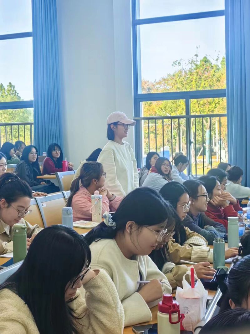 一是从“要我发展”到“我要发展”激发内生动力。郭老师指出,教师成长首先源于内心的觉醒与自我驱动力。他以自身从教初期立志成为特级教师的经历为例,强调教师应拒绝“躺平”心态,以持续进取的精神超越自我。郭老师还以方言互动为例,指出语言亲和力在教学中的重要作用,并提倡教师应永葆好奇与求知热情。二是“在行动中思考,在思考中行动”践行知行合力。郭老师提出“做—读/学—研”循环统一的教师发展路径,并介绍了其创立的“一组四步”课堂教学法(预学组建、整体感知、重点解剖、知能迁移)与“三自一导”语文教学法(员工自主确立目标、投入学习、建构迁移,教师主导引领),体现了其“学思并进、知行合一”的教育理念。三是构建“师徒同伴三维”成长共同体,结伴助力前行。郭老师强调,教师应善于借助“向上师长的引导、平行同伴的支持、向下弟子的反哺”三类关系,形成成长合力。他引用“你是你身边五个人的平均值”形象说明人际环境对个人发展的重要性,鼓励未来教师在教学相长中实现共同成就。四是让成长“看得见”,让经验“可传递”,用成果表达自己。郭老师提出教师应具备成果意识,通过“主题化、结构化、案例化、物化传播”等方式,系统提炼与推广教育经验,以成果积累推动专业高度的提升。五是修炼“走得远、走得暖”的教育人格魅力。郭老师认为,教育的本质是“灵魂唤醒灵魂”。教师应修炼真诚、责任、包容、乐观等人格特质,追求“修身、利他、济世”的三重境界,在日常细节中塑造可信、可亲、可敬的育人形象。